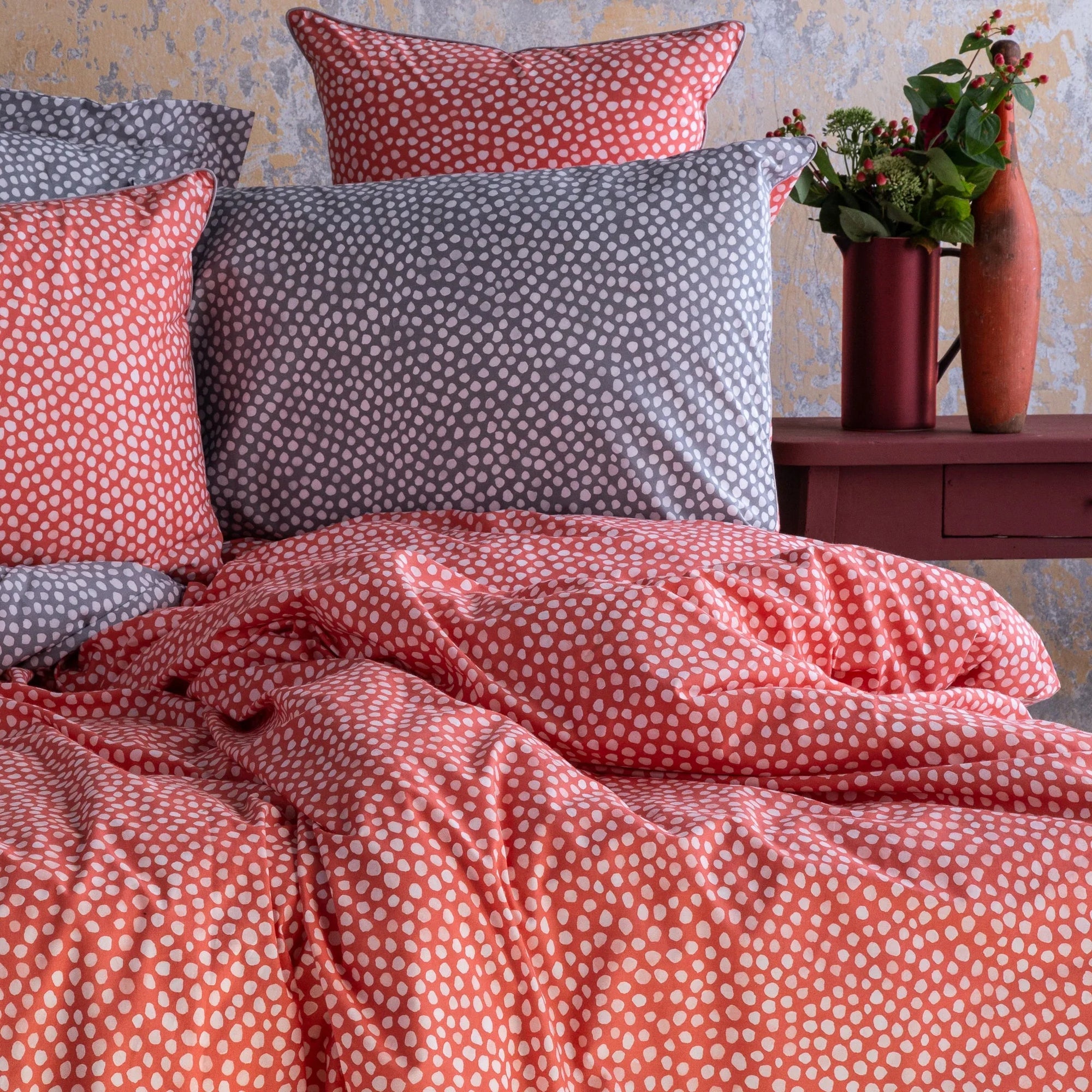 Housse de couette premium rose corail rouge orange (FR)