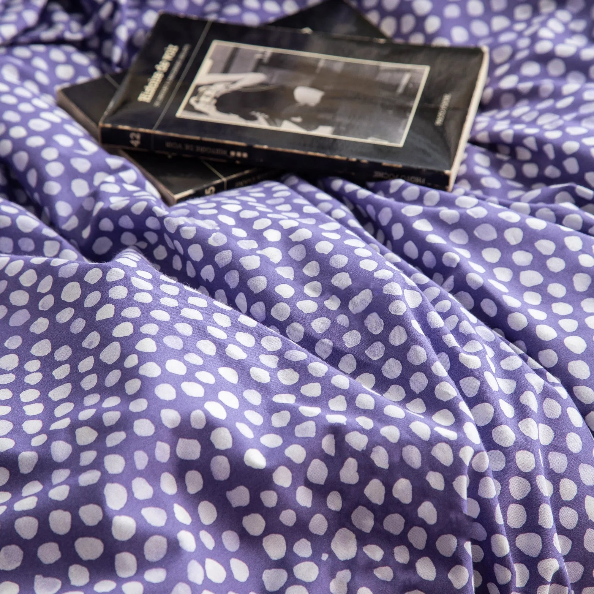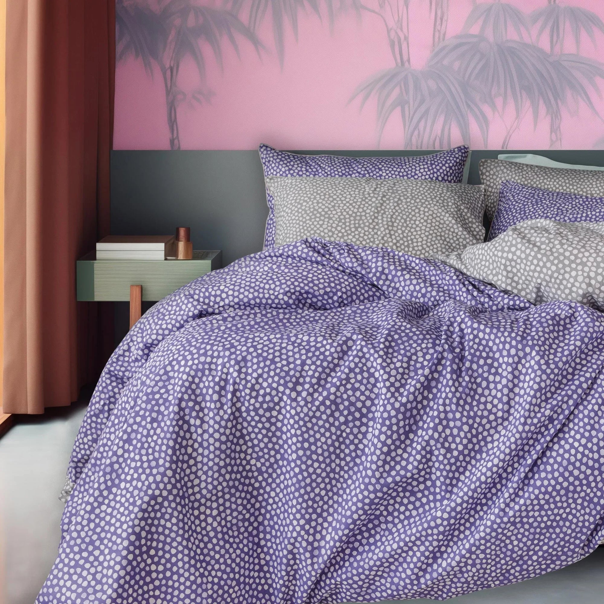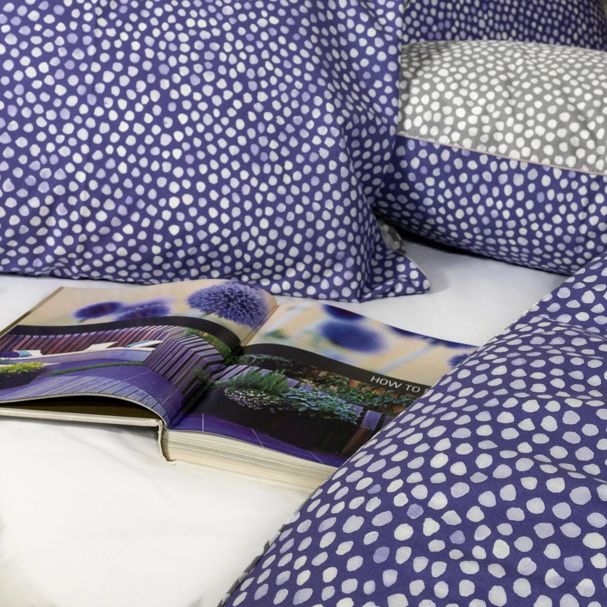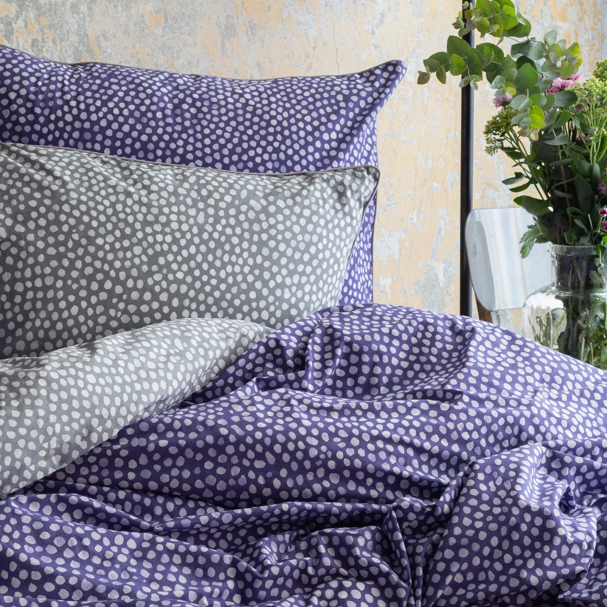 Parure de lit en coton à pois violets et gris (FR)